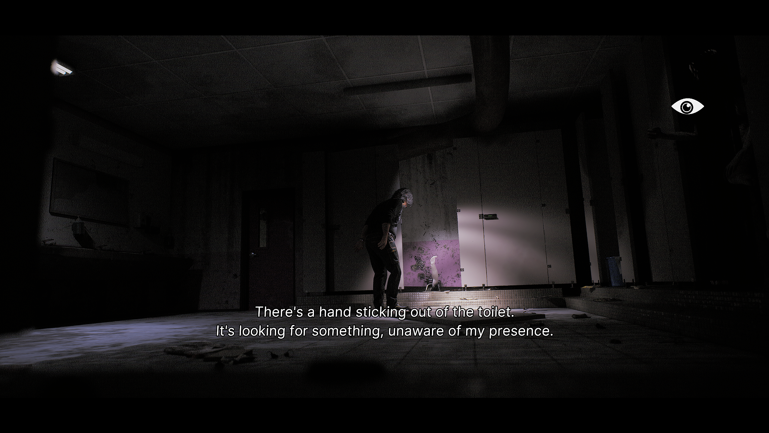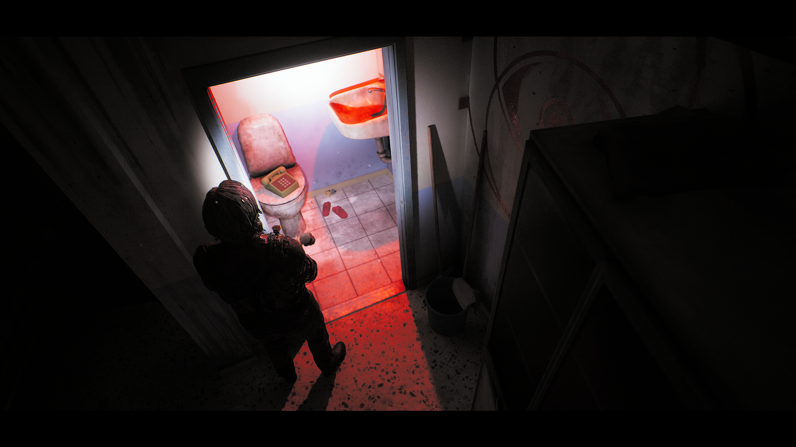 In this exhibit, we see two examples of toilet furniture. The rightmost chamber pot chair boasts a circular cavity where the pan is missing. Historically, this could mean it was removed for cleaning. Or perhaps the chair was simply decorative, enkindling the sentiments of decay, neglect, abandonment, and a yearning to be reunited with the parts of us that we may have been left behind along the way. Which, in a horror game, usually means “uh-oh”. On the left, a similar design has incorporated an oblong porcelain bowl. The graceful floral pattern evokes late 18th- to early 19th-century J. Maddock & Sons fine sanitation furnishing.